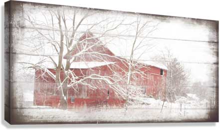 Snowy Red Barn Rustic Farmhouse Wall Art on Canvas