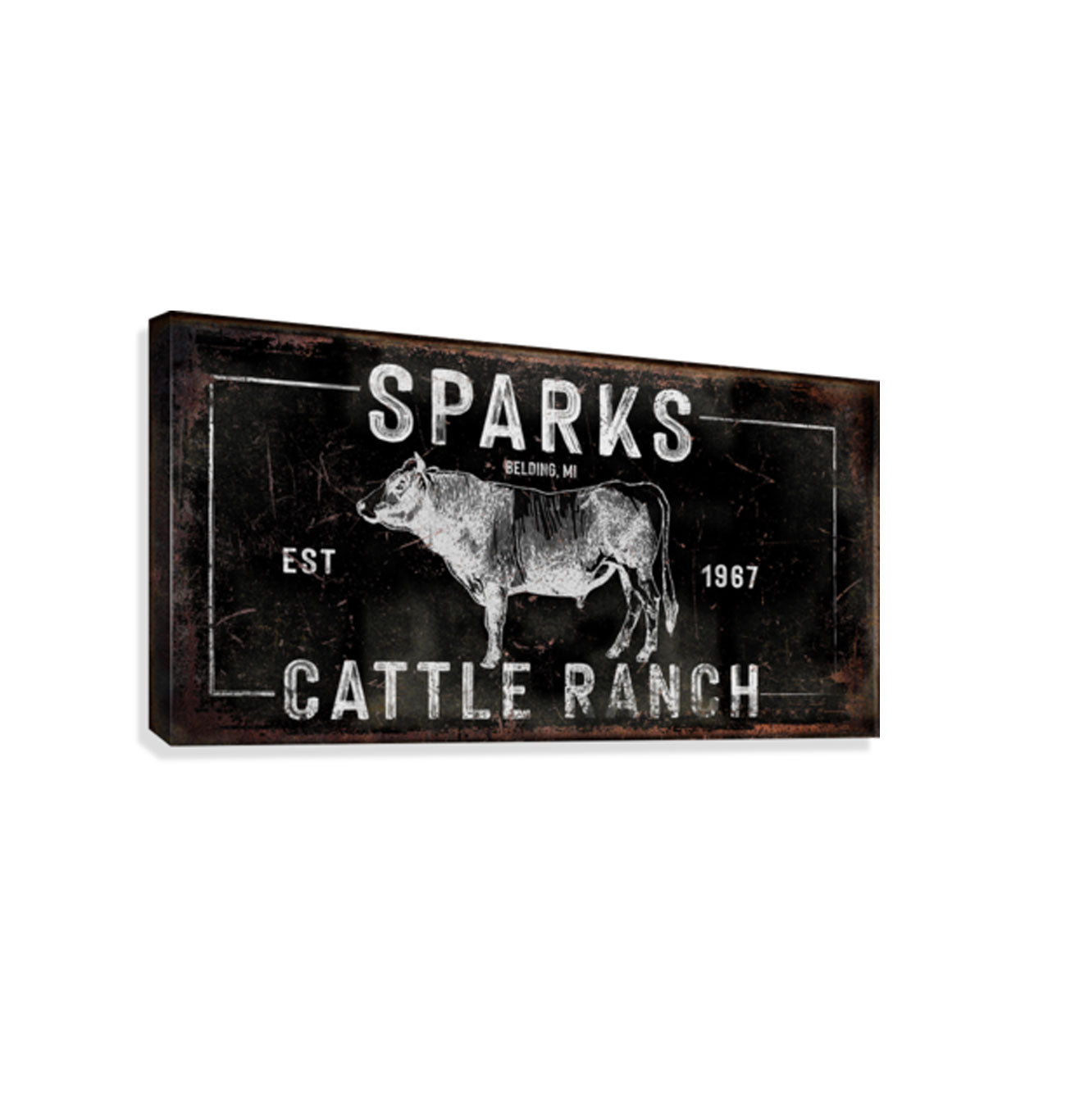Tailor Made Rooms’ personalized cattle ranch sign is a perfect piece of farmhouse wall art for your modern farmhouse or rustic farmhouse home. Our signature custom cow wall art can be personalized with your family name, established date, city, and state. This is farm inspired wall art at its finest!