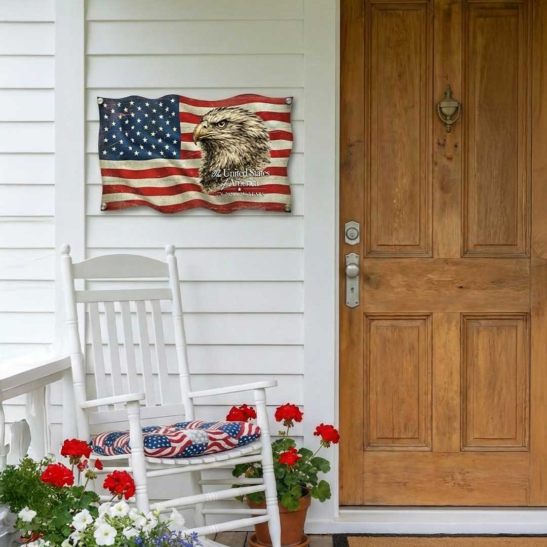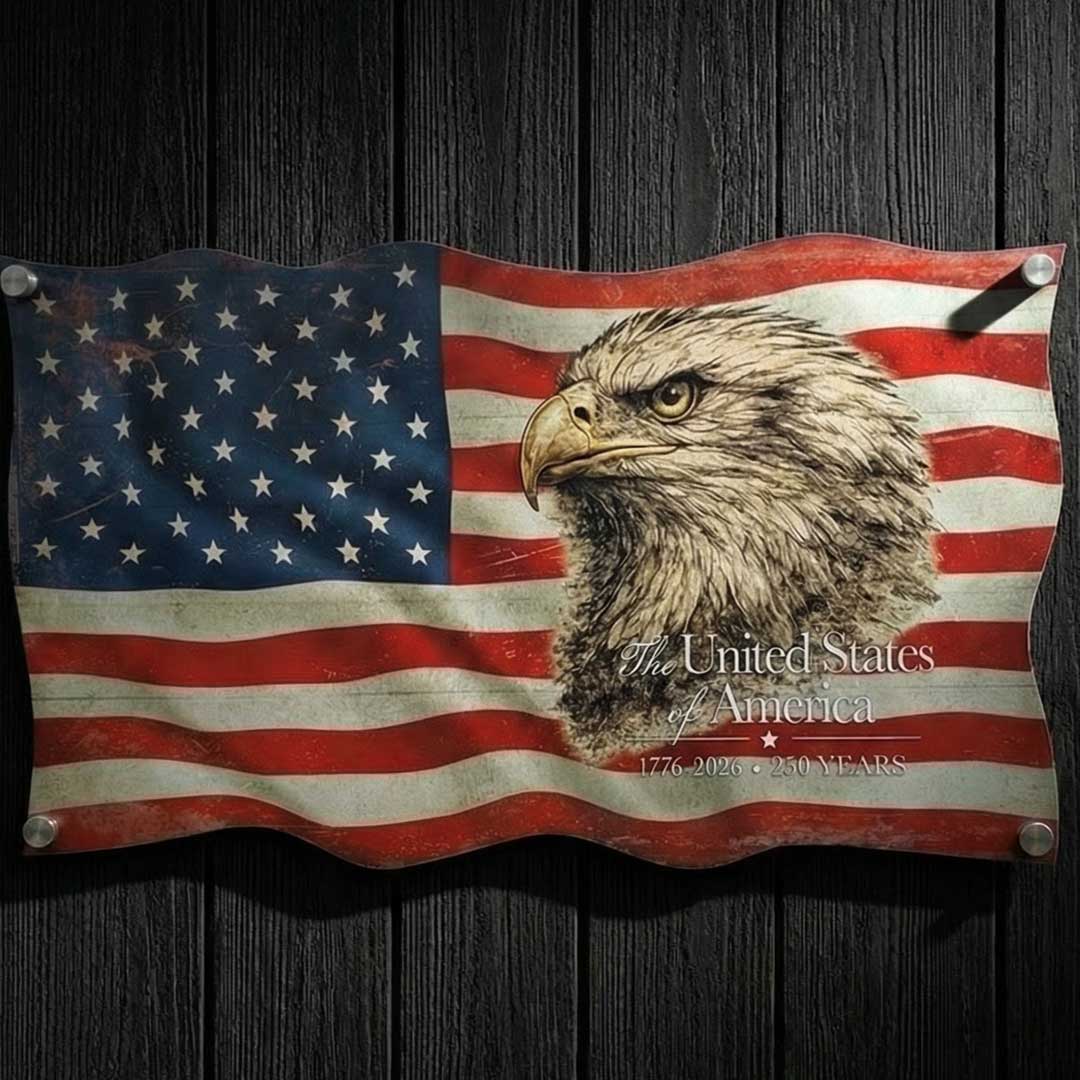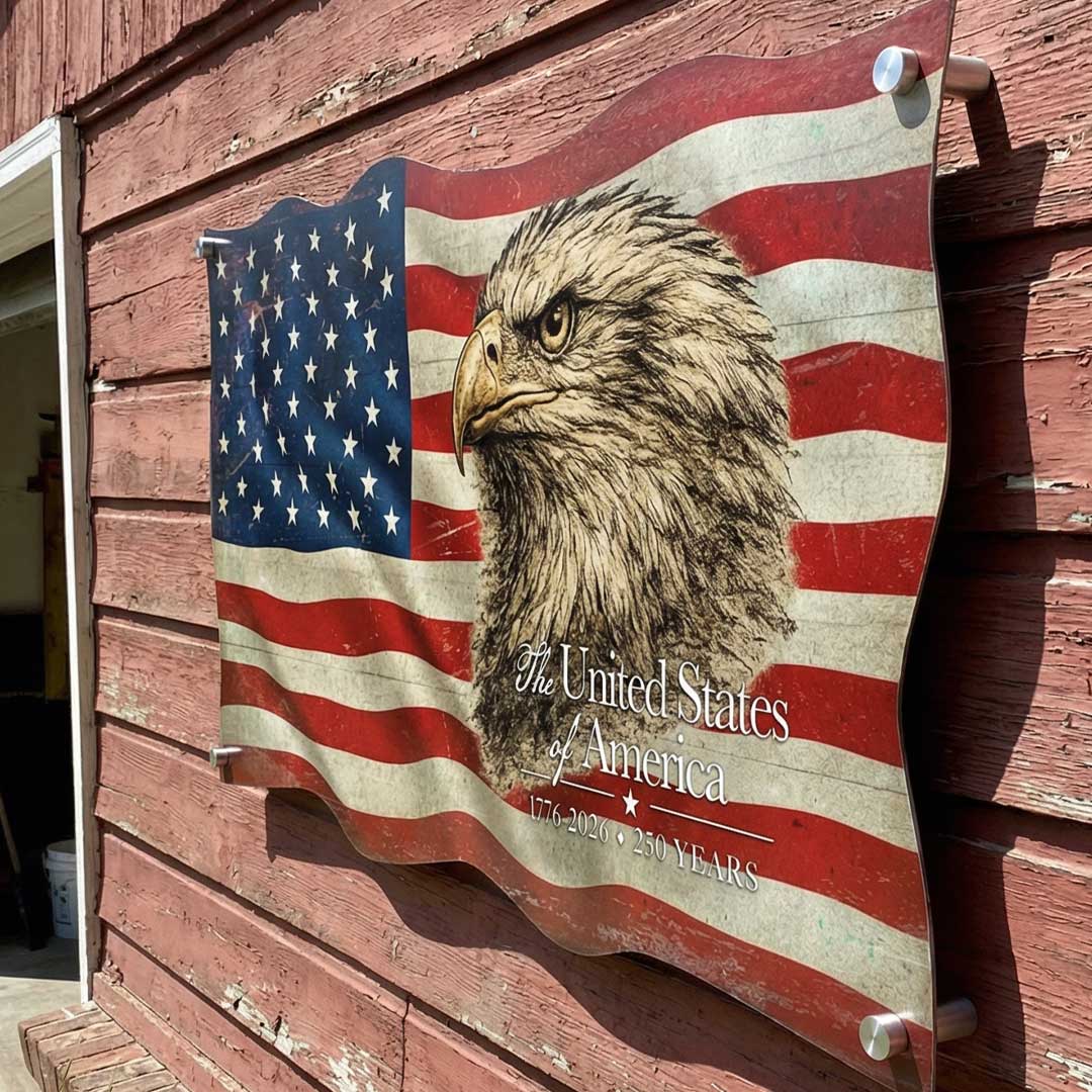 Celebrate America's 250th Anniversary with our premium Semiquincentennial flag featuring a majestic American bald eagle over the iconic stars and stripes. This 1776-2026 commemorative flag honors 250 years of freedom and marks the historic United States Quarter Millennium celebration. Perfect for July 4, 2026 Independence Day events, parades, and patriotic home décor. USA-made with fade-resistant inks, reinforced stitching, and metal stand-offs for lasting durability. Ideal for veterans, patriots, schools, and anyone celebrating the America 250 Semiquincentennial. Available in multiple sizes. Join 350 million Americans honoring the Declaration of Independence 250th anniversary. This patriotic eagle flag is more than décor—it's a collectible piece of American history commemorating our nation's greatest milestone from 1776 to 2026. Shop now and be part of history!