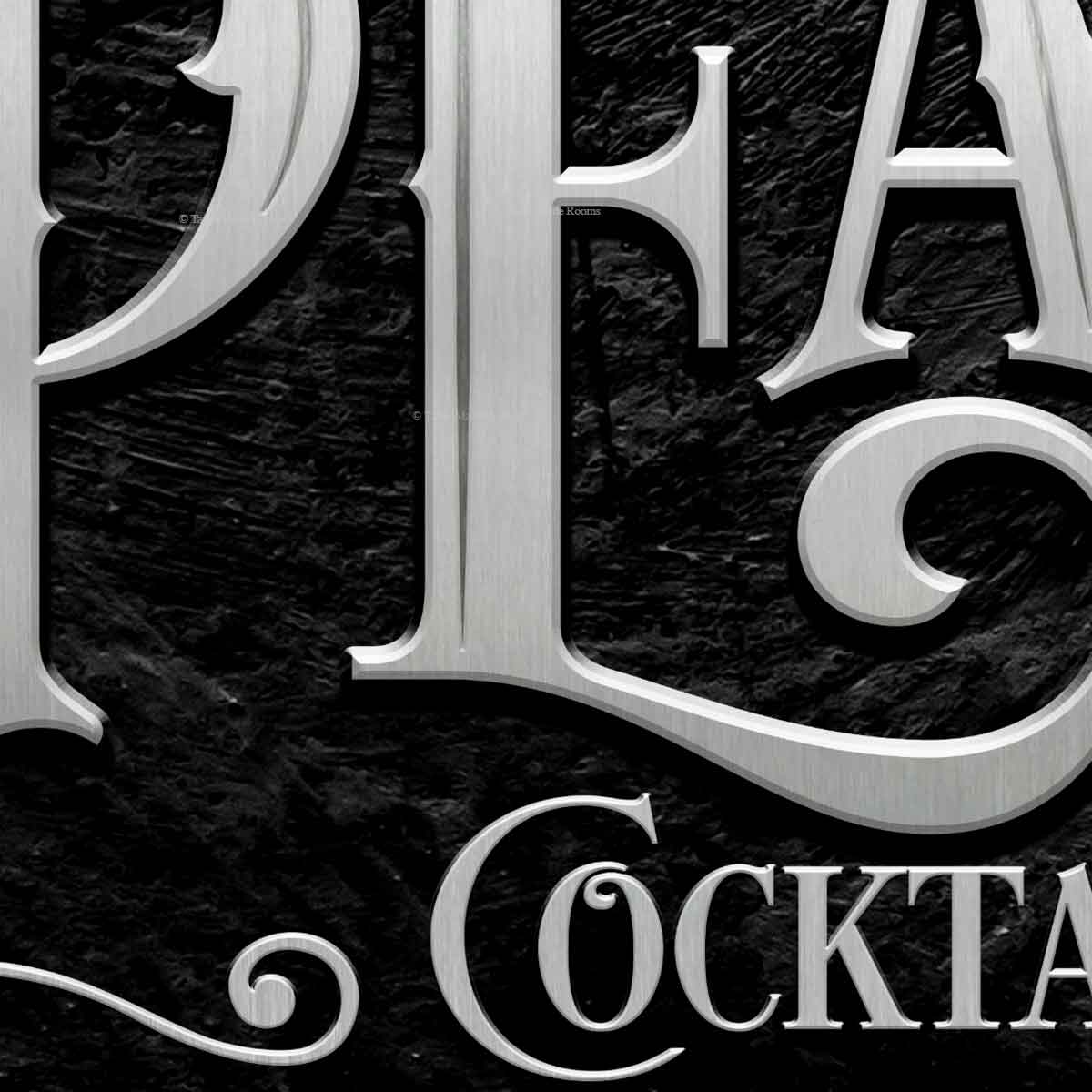 Speakeasy Sign in Silver Text that looks like metal, [speakeasy Cocktails and spirits]