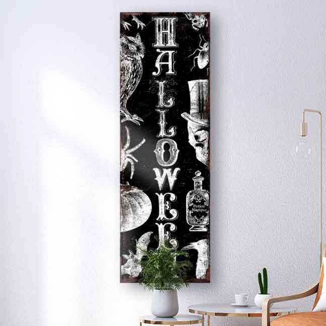 Step into a world where the moonlight weaves spells and the night comes alive with enchanting mysterious front porch signs. Our Halloween Porch Sign, is crafted with care from wood, canvas or brushed metal. It beckons you to embrace the eerie allure of the season. Place around the door frame of your porch, this bewitching decor piece is a portal to a realm where magic and mischief intertwine.