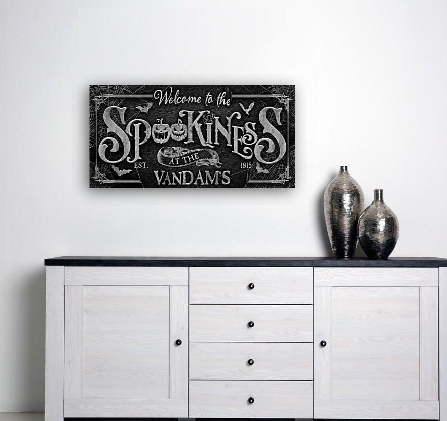 Welcome to Our Spookiness Halloween Wall Decor Family Name Sign