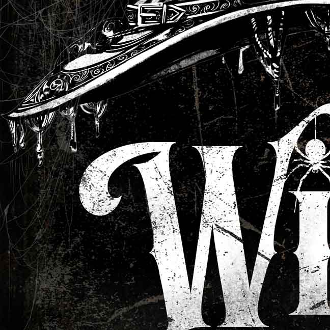 Halloween Wall Decor Wicked Sign - with white words on Industrial Gothing black background with spider webs and the words Something Wicked is Brewing.