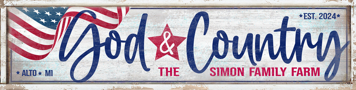 The perfect patriotic personalized outdoor barn sign is waiting for you here at Tailor Made Rooms. Our oversized metal barn signs can be customized with your family name, established date, and any other personal details you wish to display.