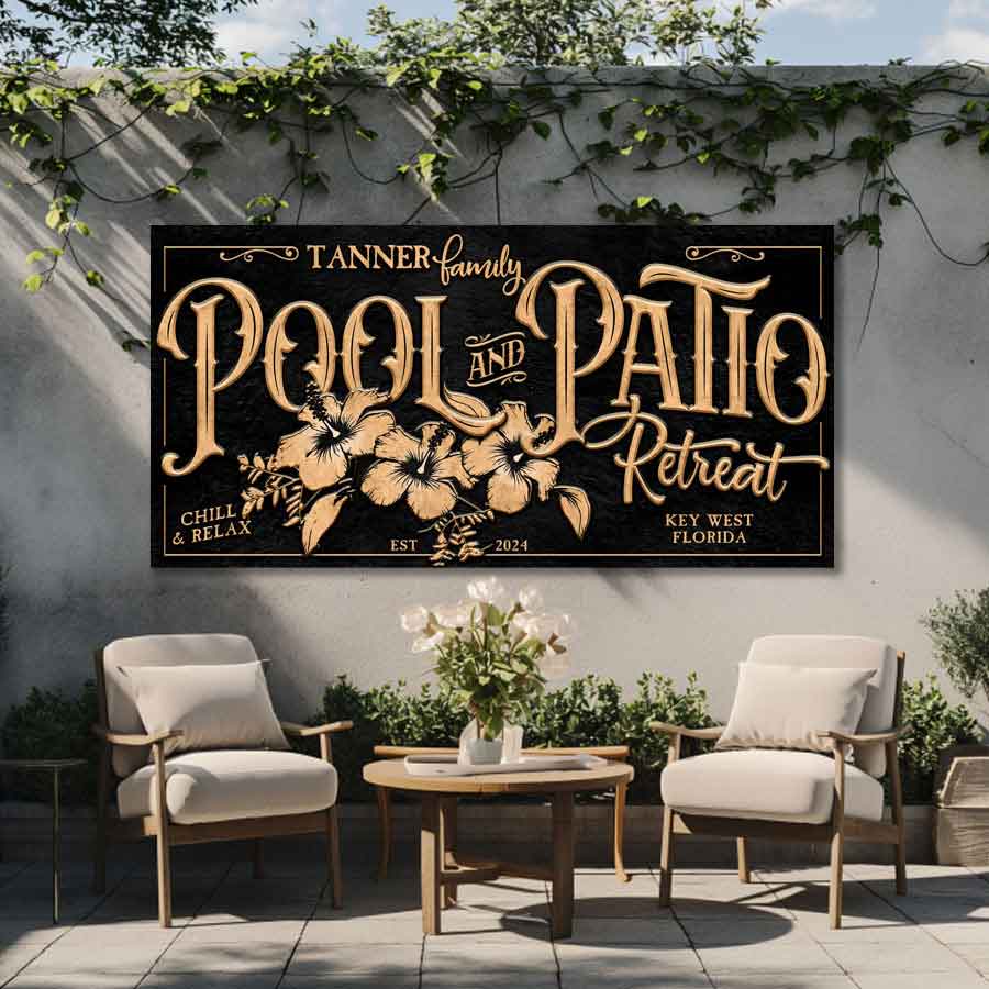 Immerse yourself in the ambiance of our Pool & Patio Wall Signs, with a Tailor Made Rooms Pool Sign.