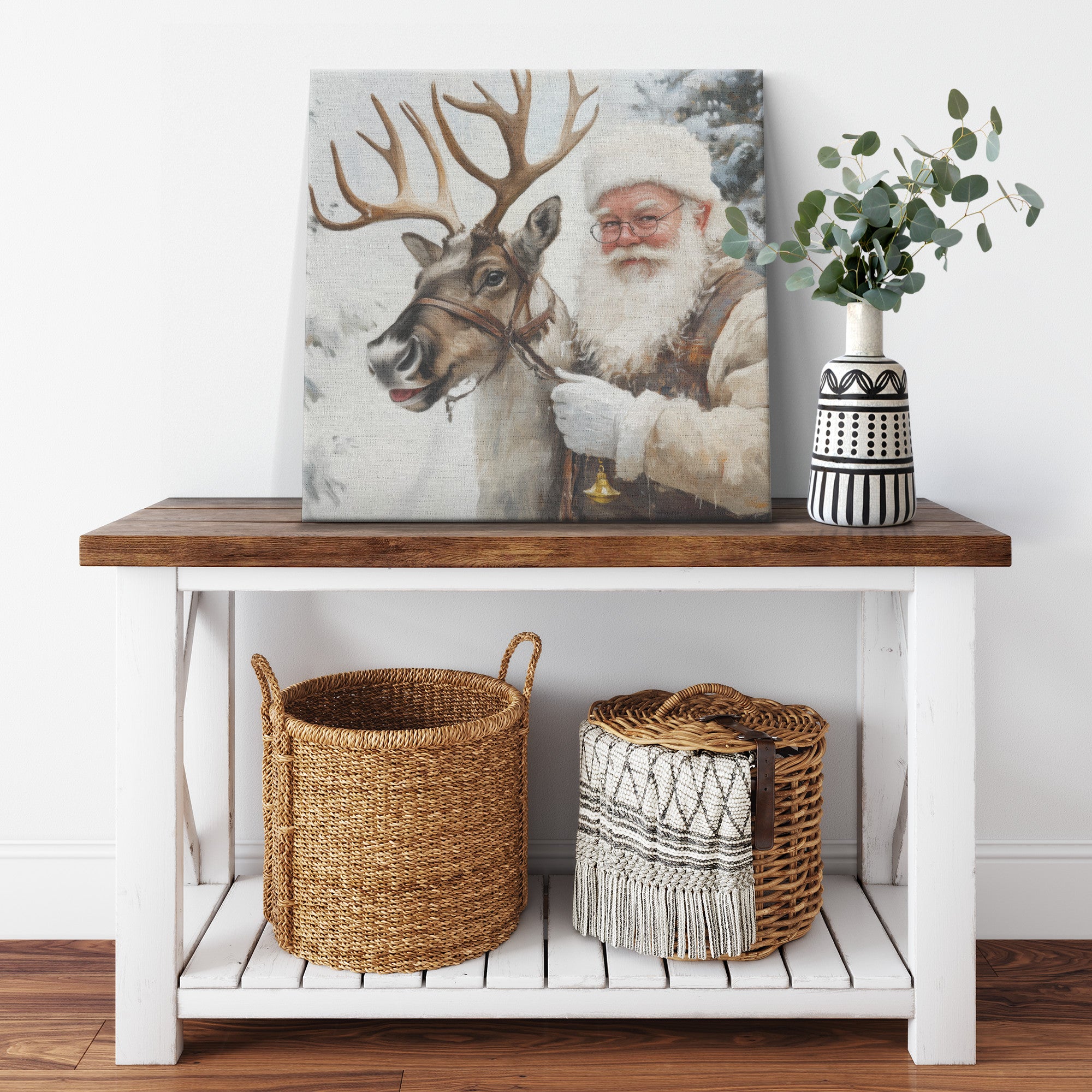 Vintage Santa with Reindeer Art Print: Classic Holiday Magic