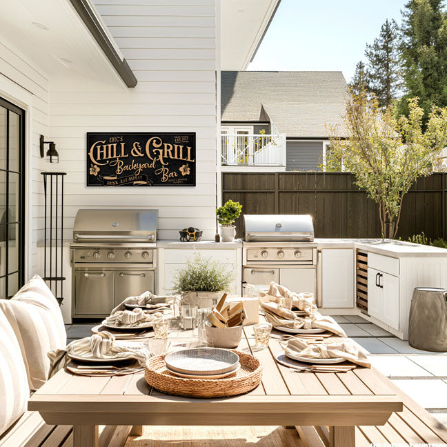 Whether you're hosting a lively gathering or unwinding on a peaceful evening, the "Chill and Grill Sign" is the perfect way to spruce up your outdoor grilling decor. With its sleek design and durable construction, it's sure to become an essential part of your outdoor cooking space.