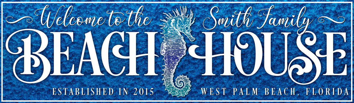 Coastal Decor - Beach House Seahorse Sign in Blue